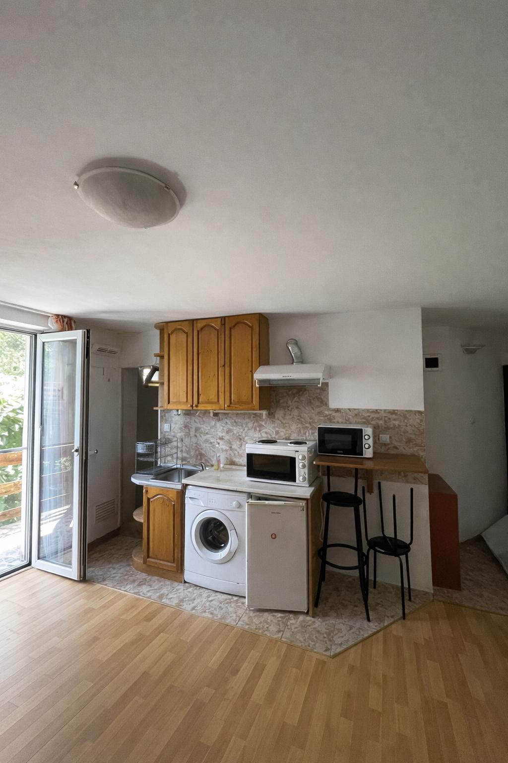 Просторната еднопространствена зона включва кът за готвене, коридор, баня с тоалетна, тераса. Апартаментът е обзаведен и отоплен на ток, готов за настаняване.