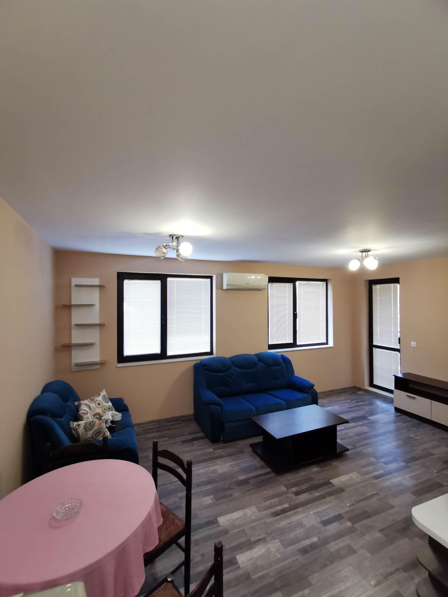 Жилището се отдава напълно обзаведено и оборудвано с всичко необходимо. Кухнята е оборудвана с фурна, керамични котлони, микровълнова, маса и посуда за хранене.