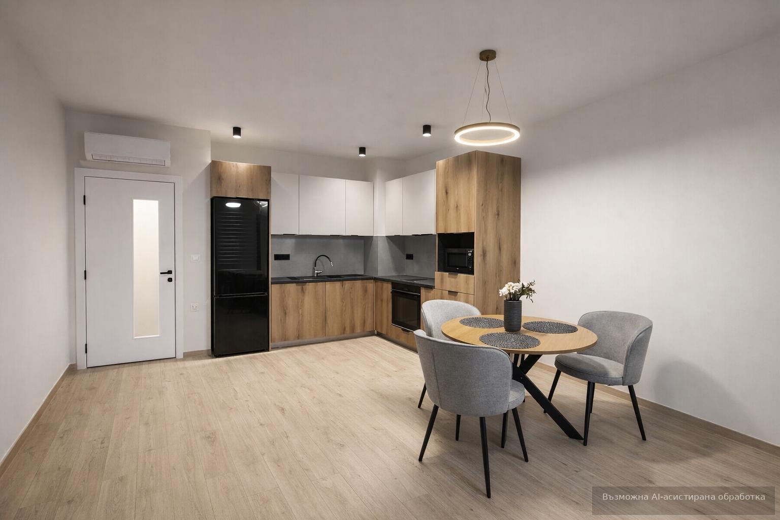 Жилището се предлага чисто ново, напълно обзаведено и оборудвано с всичко необходимо за едно домакинство.
