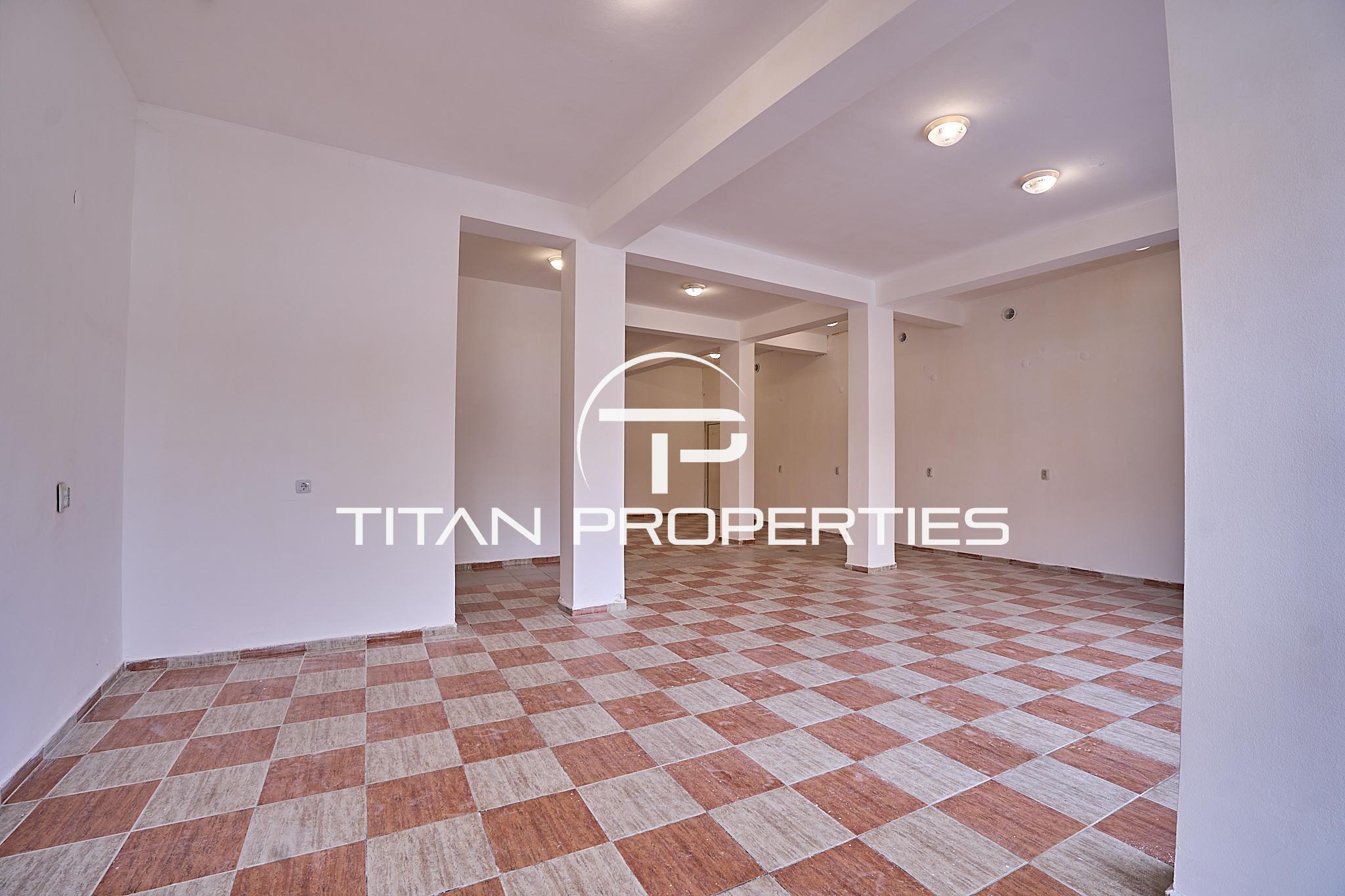 Агенция за недвижими имоти Титан Пропъртис предлага на Вашето внимание просторен магазин под наем в Център. Намира се в близост до спирки на градски транспорт, хипермаркети, зони за отдих и спорт. Разполага с площ 90кв.м и се състои от: търговско помещение с кухненски кът и санитарен възел. Подходящ за IT компания, Call център, обучителен център, Езикови школи, Архитектурно - инженерно студио, Арт студио, Счетоводна къща и др. За оглед на това и други атрактивни предложения, не се колебайте да ни потърсите на посочения телефон или да ни изпратите данните си чрез формата за запитване на сайта. Реф. номер: 2179052