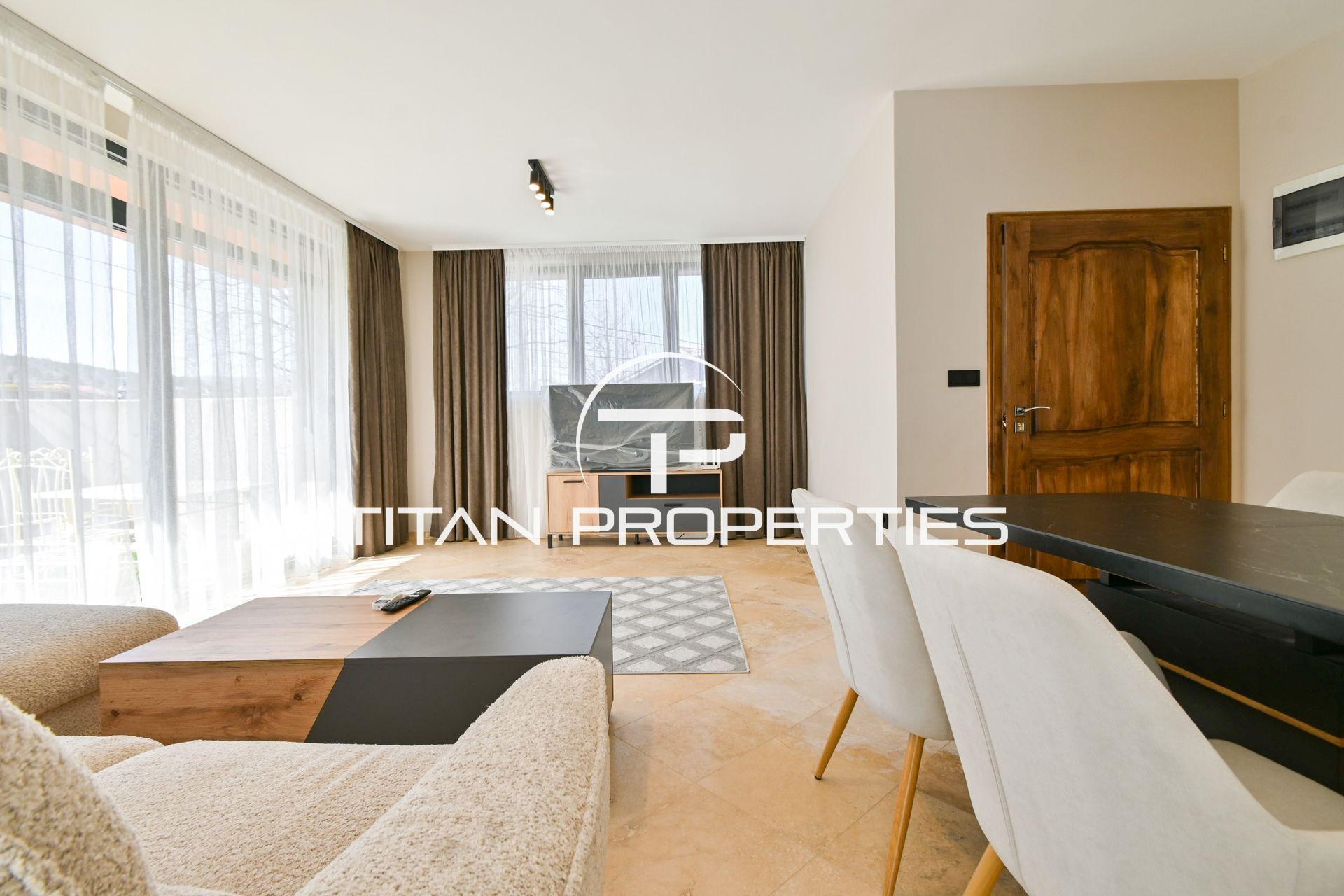 Обзаведен имот с отопление на ток, предлага съвременен стил и удобства. Месечният наем е 2000 EUR.