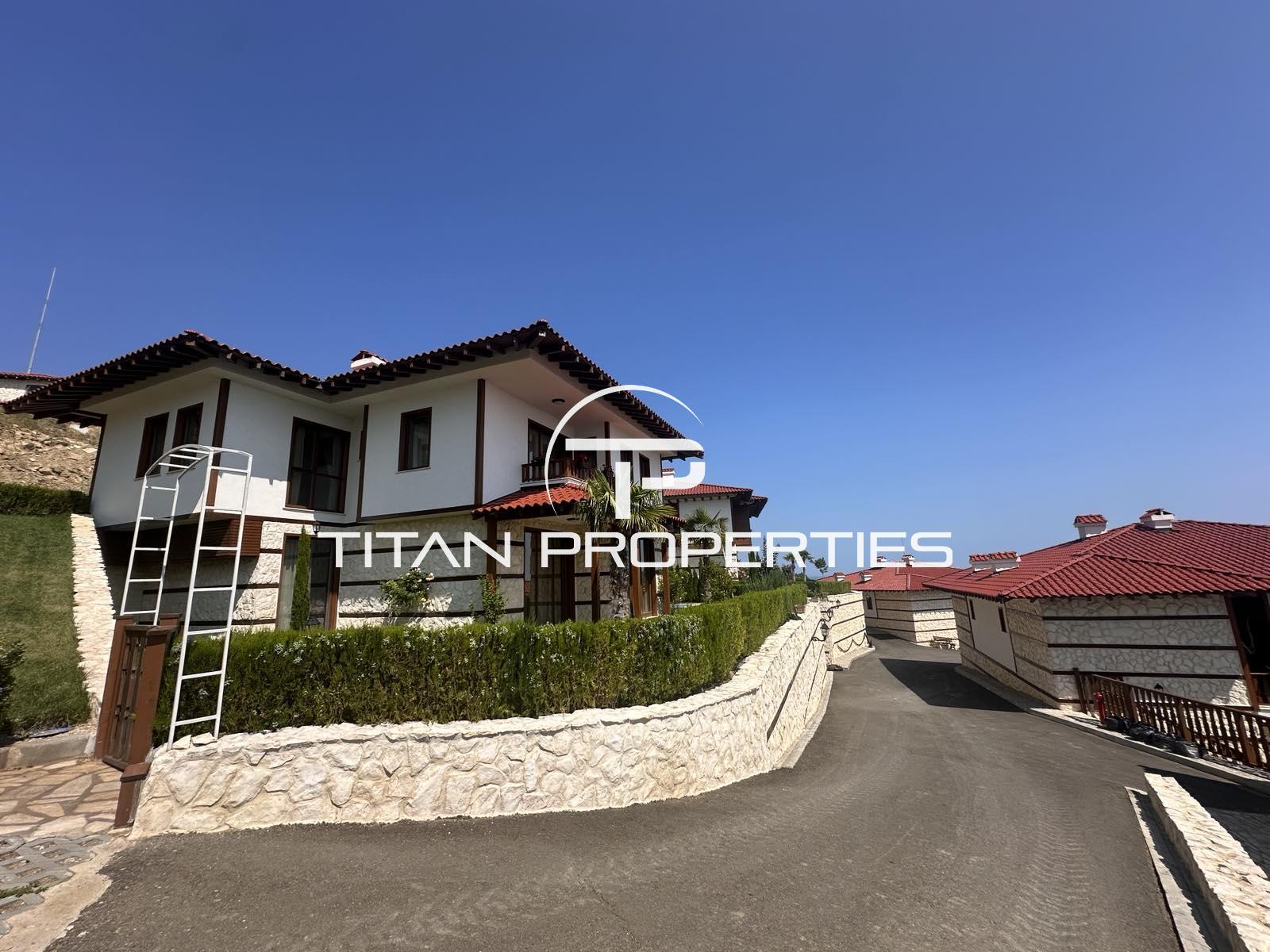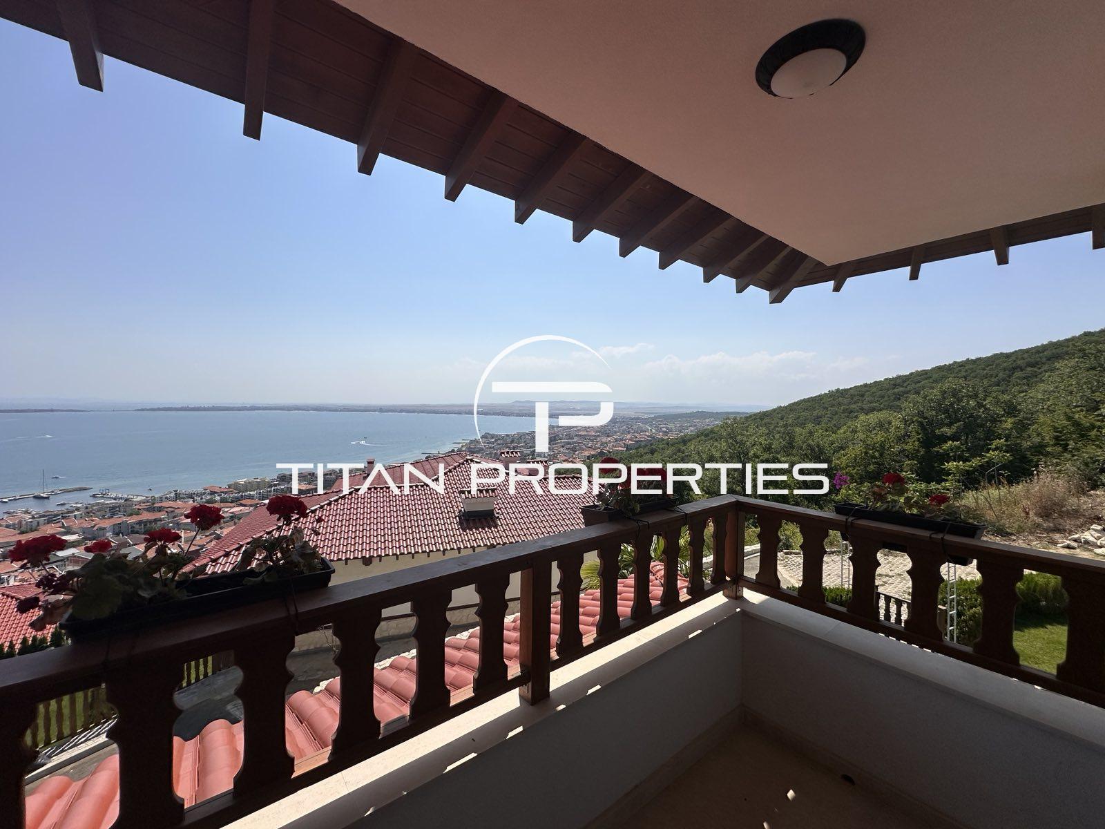 Агенция за недвижими имоти "Титан Пропъртис" предлага за продажба, Двуетажна Къща с панорамен изглед към морето в гр. Свети Влас. Намира се в затворен комплекс който е част от гориста местност "Касада“, в непосредствена близост до “Диневи Ризорт", магазини, ресторанти, кафенета, центрове за красота и СПА, Амфитеатър и много други. Целия комплекс има романтичната визия, като алейната й мрежа, осветена от фенери и декорирана с камък, дава предпоставка от всички нива на всяка къща да има панорамни гледки едновременно към морето и към гората. Комплексът разполага с два тенис корта, басейн за възрастни и деца, апартхотел, параклис,паркинг, изключително живописна и хармонична с природата вътрешна инфраструктура, предлагаща чудесен изглед към морето и планината, което гарантира пълен релакс и комфорт на своите обитатели. Предлаганата от нас Къща разполага с РЗП 251.30 кв.м. и двор с площ 180 кв.м Разпределение: 1 етаж – дневна с трапезария и кухненски бокс, мокро помещение с тоалетна, две спални, две бани с тоалетни, веранда. 2 етаж – три спални, три бани с тоалетна, тераса. Къщата предлага прекрасен панорамен изглед към морето и вдъхновяващи гледки към гората. Това е базово обзаведена къща! Другите къщи в комплекса се издават "до ключ", като може срещу допълнително заплащане клиентите да си изберат мебели, както и изграждане на басейн. Комплекса ще е с контролиран достъп и ще има такса поддръжка 16€/кв.м без ДДС . Агенцията съдейства за банково кредитиране с всички водещи банки в страната при най-добри условия! За оглед на това и други атрактивни предложения, не се колебайте да ни потърсите на посочения телефон или да ни изпратите данните си чрез формата за запитване на сайта. Реф. номер: 2092896