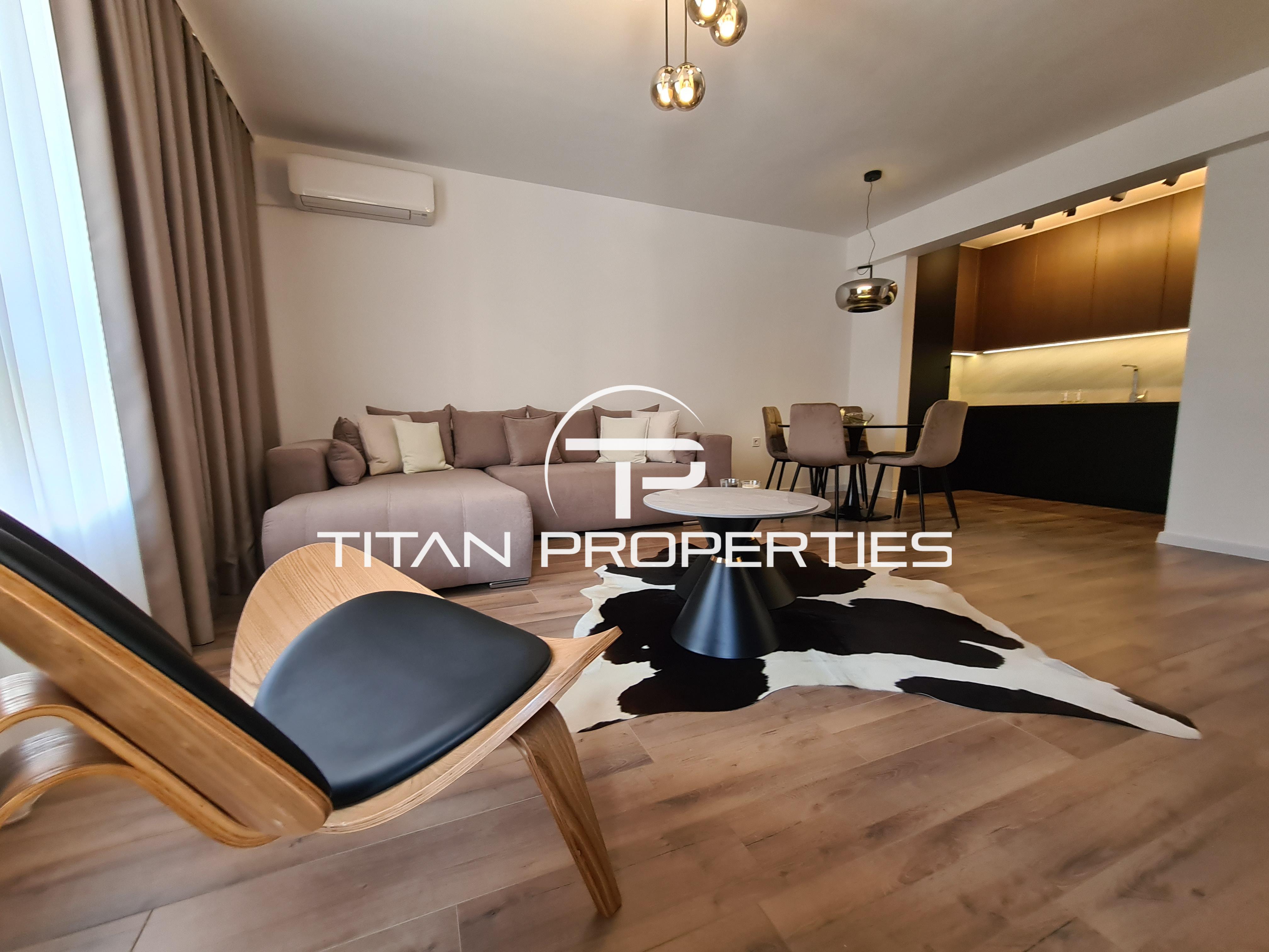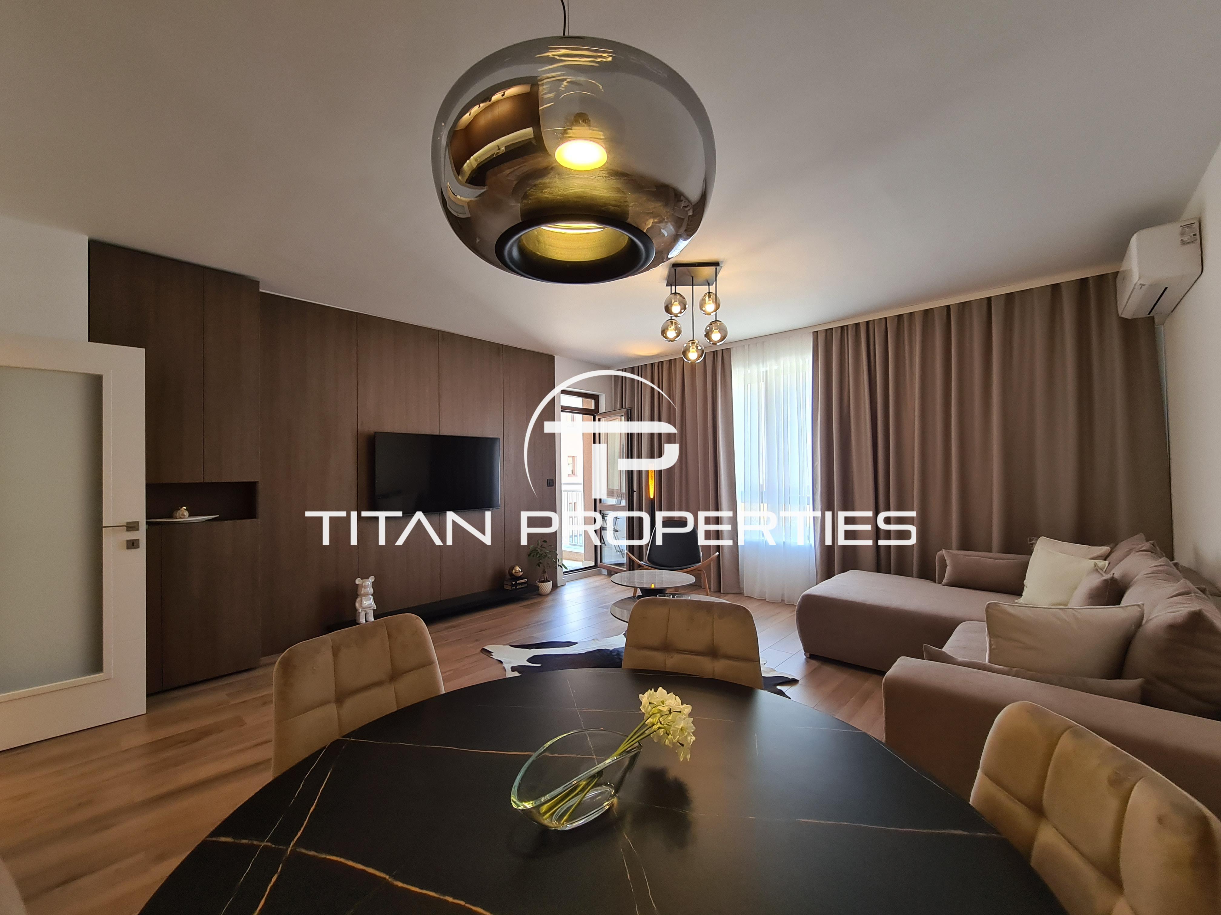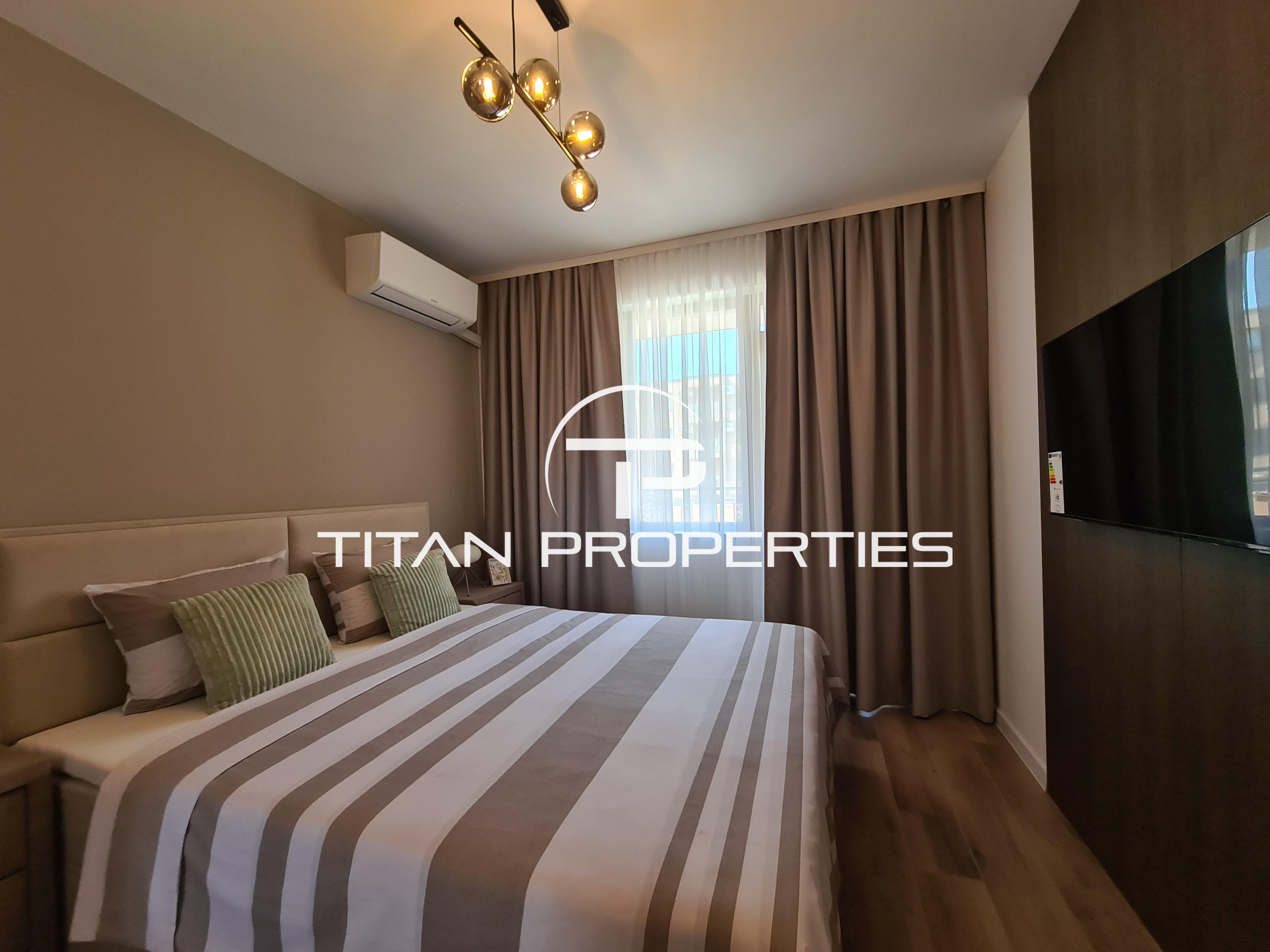 Апартаментът е с площ 70 кв.м, напълно обзаведен и готов за нанасяне. Разполага с просторен хол с кухня, оборудвана с висок клас вградени уреди. Холът е обзаведен с мека мебел, голям телевизор и дизайнерско канапе. Голямата спалня включва телевизор и голям гардероб. Терасата гледа към вътрешния двор и е идеална за релакс.