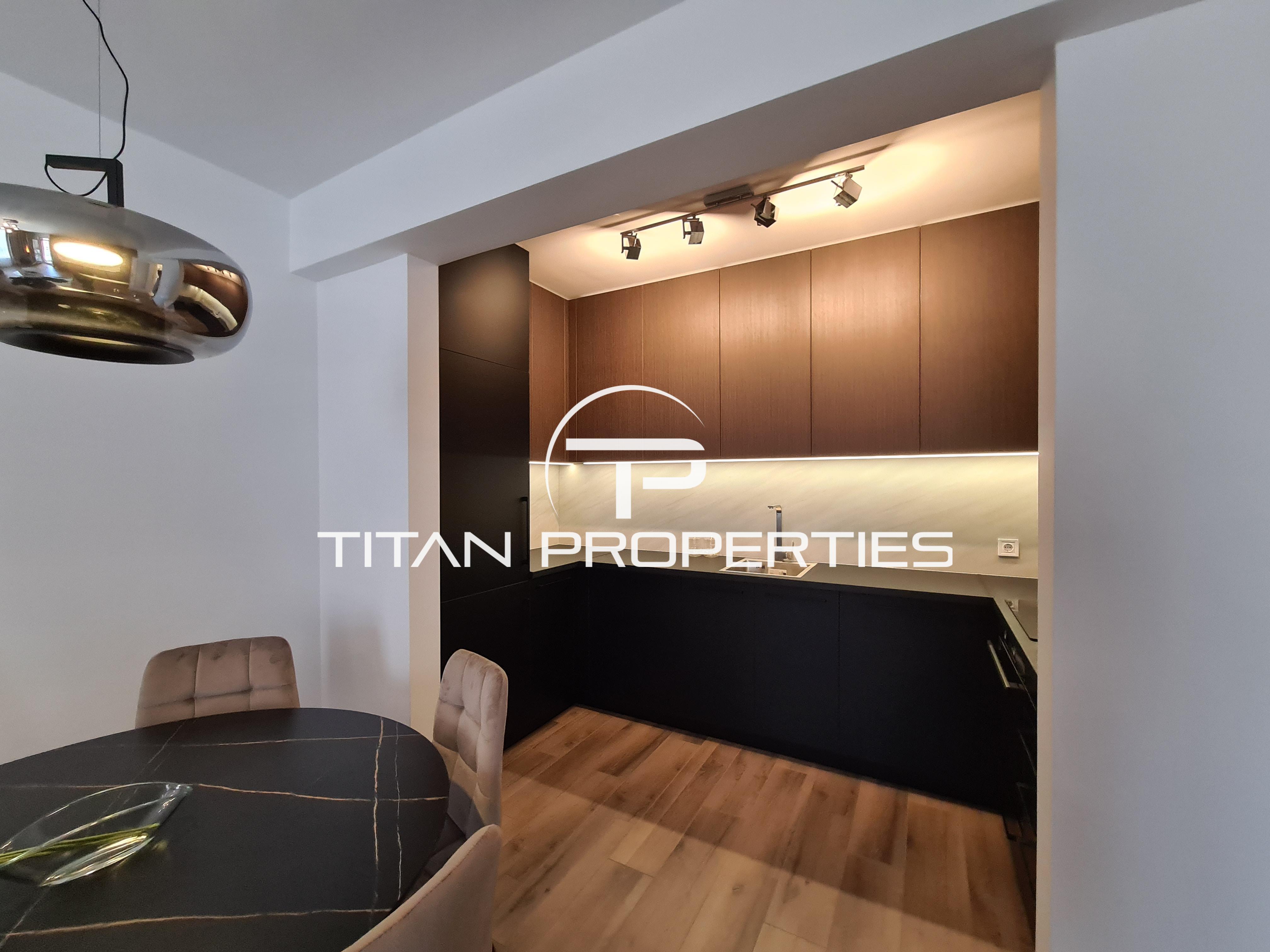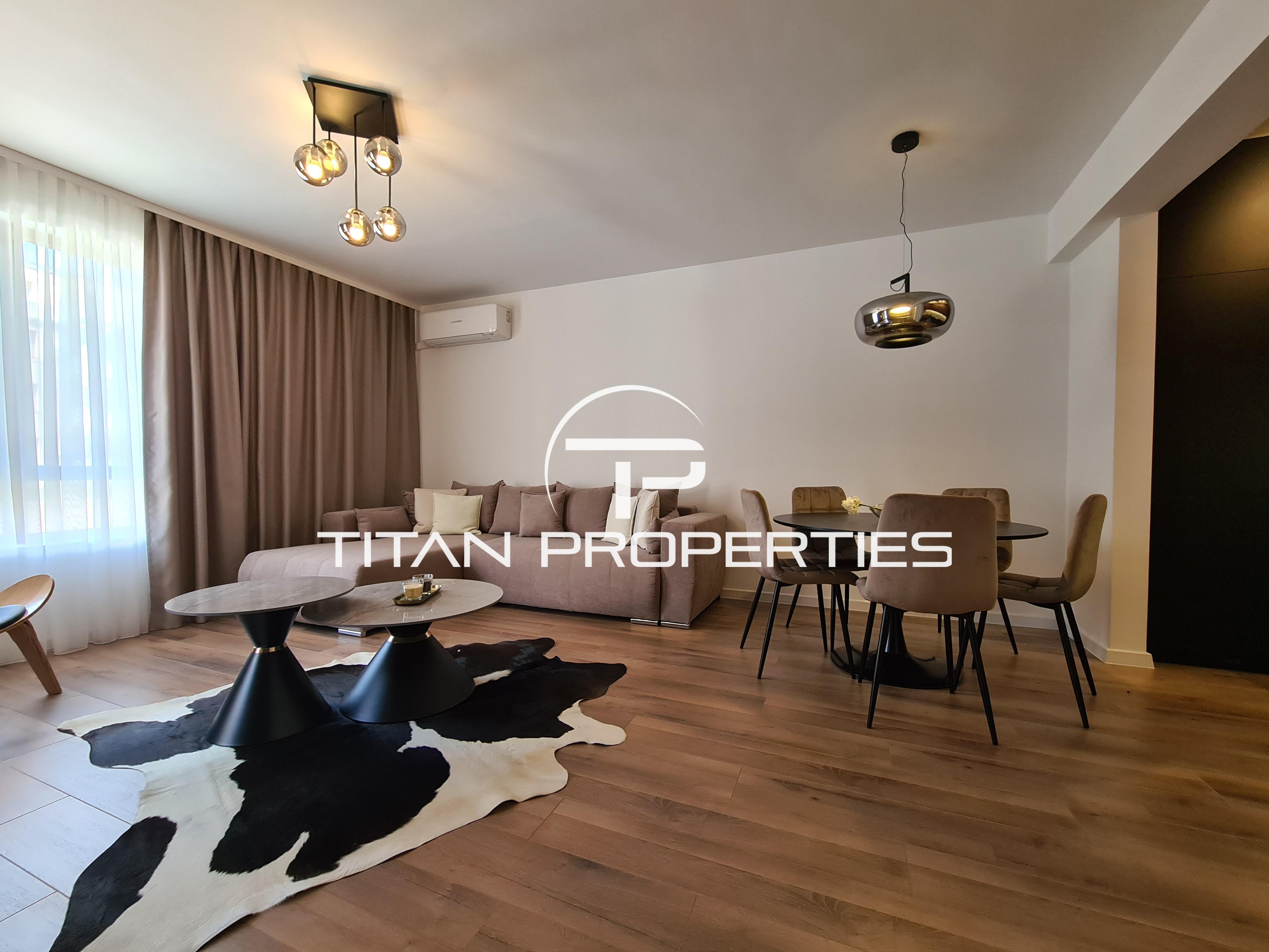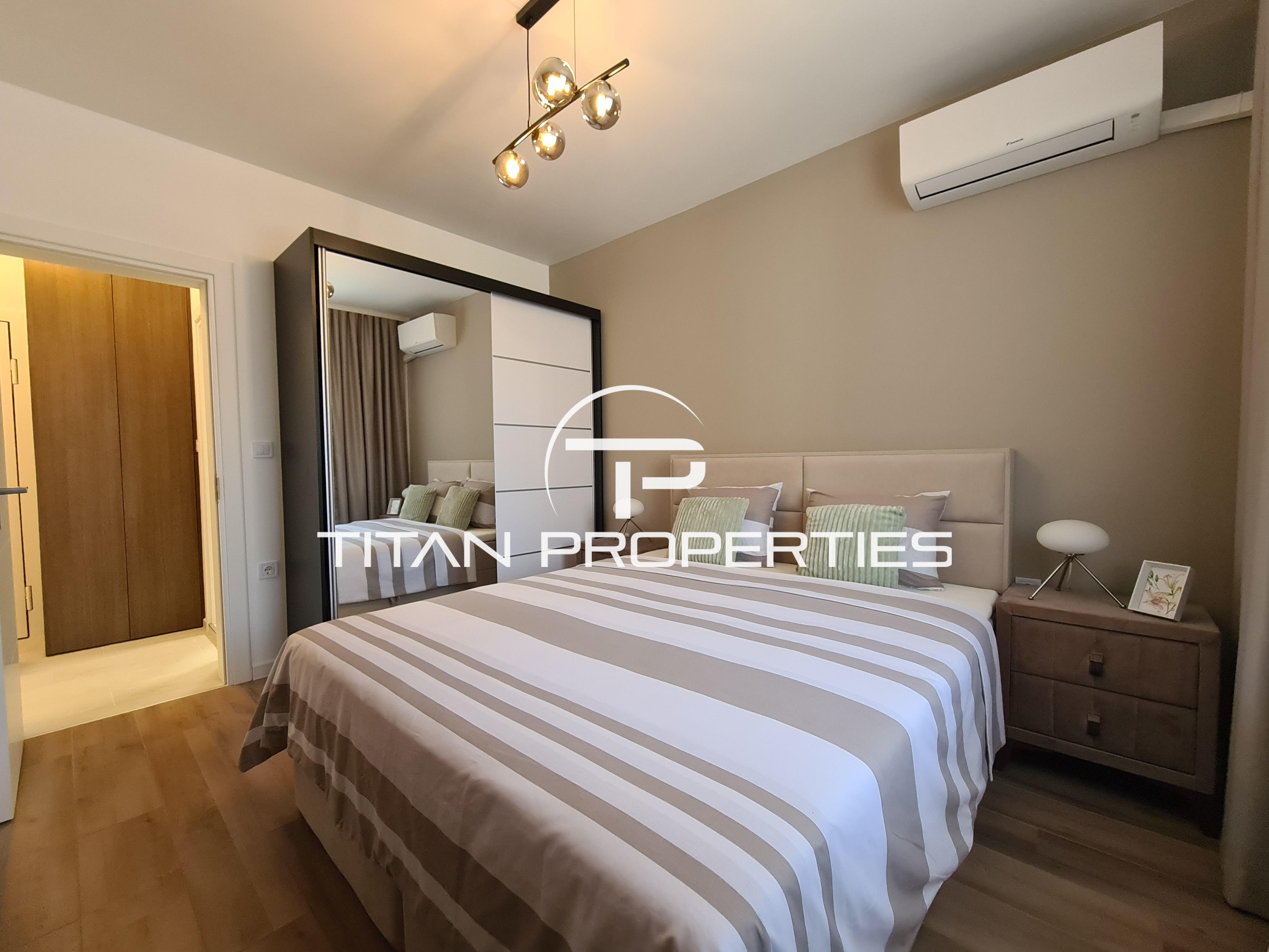 Апартаментът е с площ 70 кв.м, напълно обзаведен и готов за нанасяне. Разполага с просторен хол с кухня, оборудвана с висок клас вградени уреди. Холът е обзаведен с мека мебел, голям телевизор и дизайнерско канапе. Голямата спалня включва телевизор и голям гардероб. Терасата гледа към вътрешния двор и е идеална за релакс.