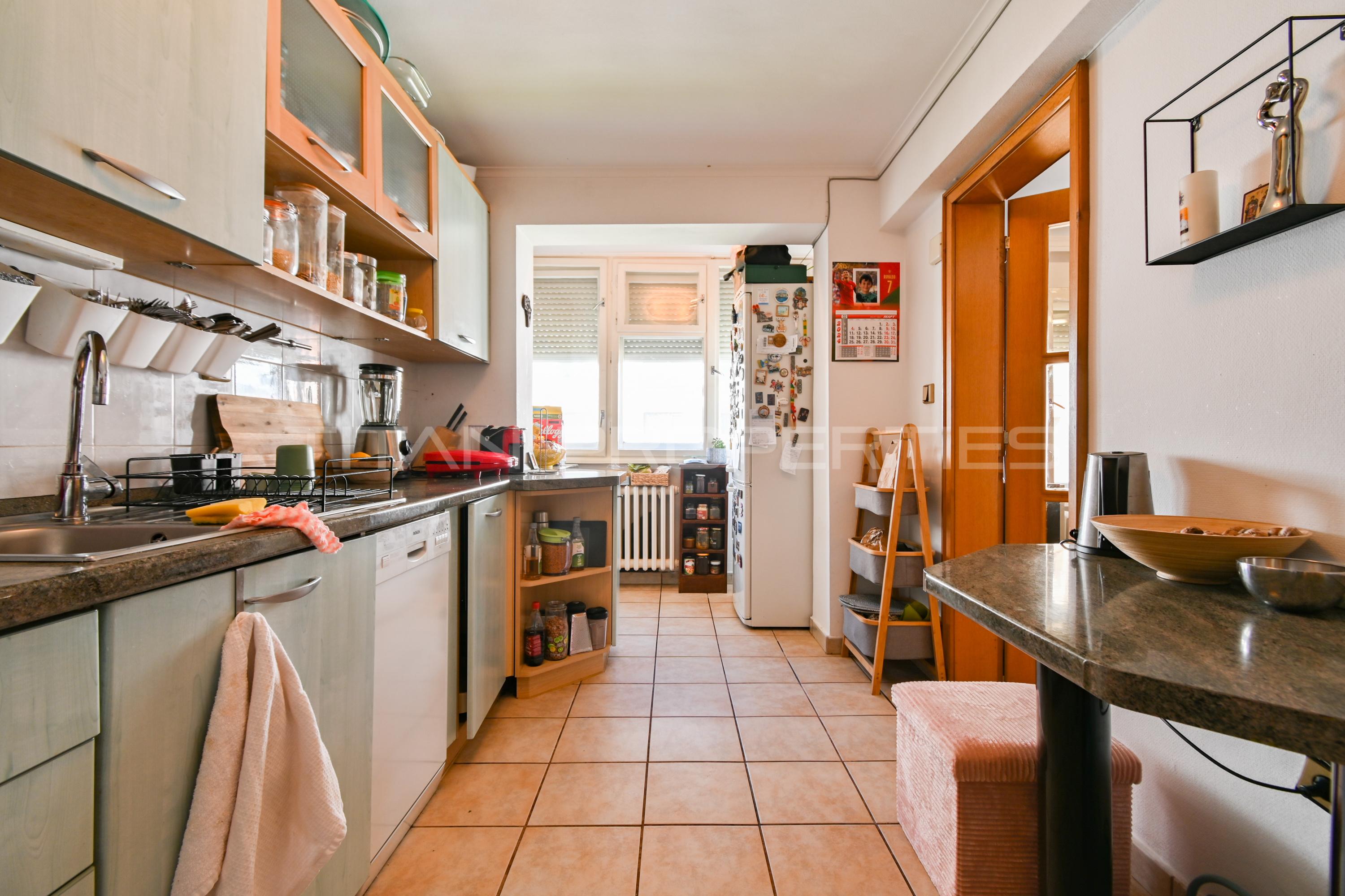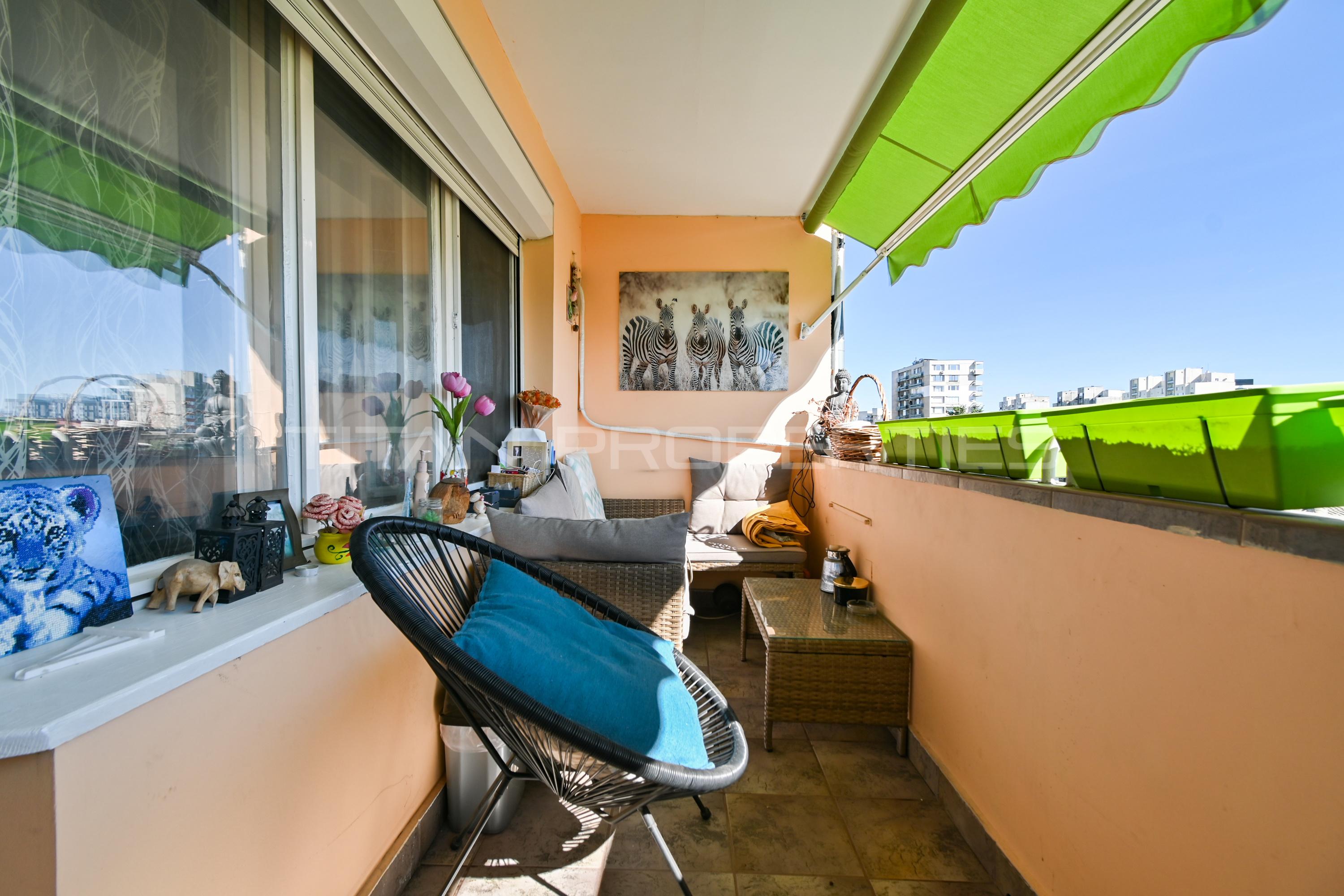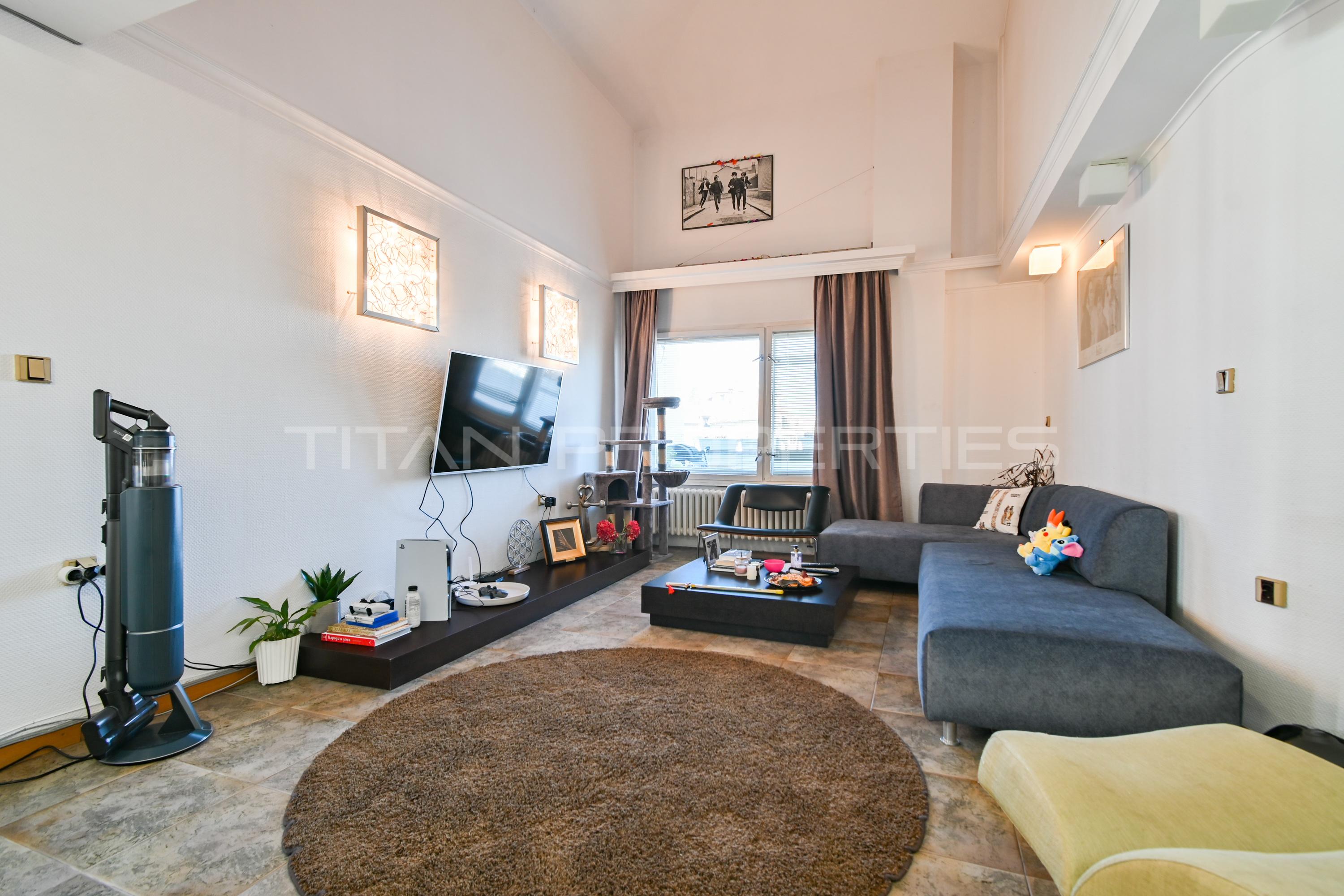 Титан Пропъртис представя на Вашето внимание просторен, слънчев и топъл мезонет с повече от прекрасна локация, а именно ж.к. Гео Милев. В близост са разположени множество търговски обекти, един от които е Скай Сити мол, спирки на градски транспорт, детска ясла, ДГ 168 Слънчогледи, 93 СУ Ал. Теодоров-Балан, медицински заведения, Парк Гео Милев е едно от най-спокойните и чисти места за раходка и игри, което е на 250 м. пешеходно разстояния, както и стадион Академик.