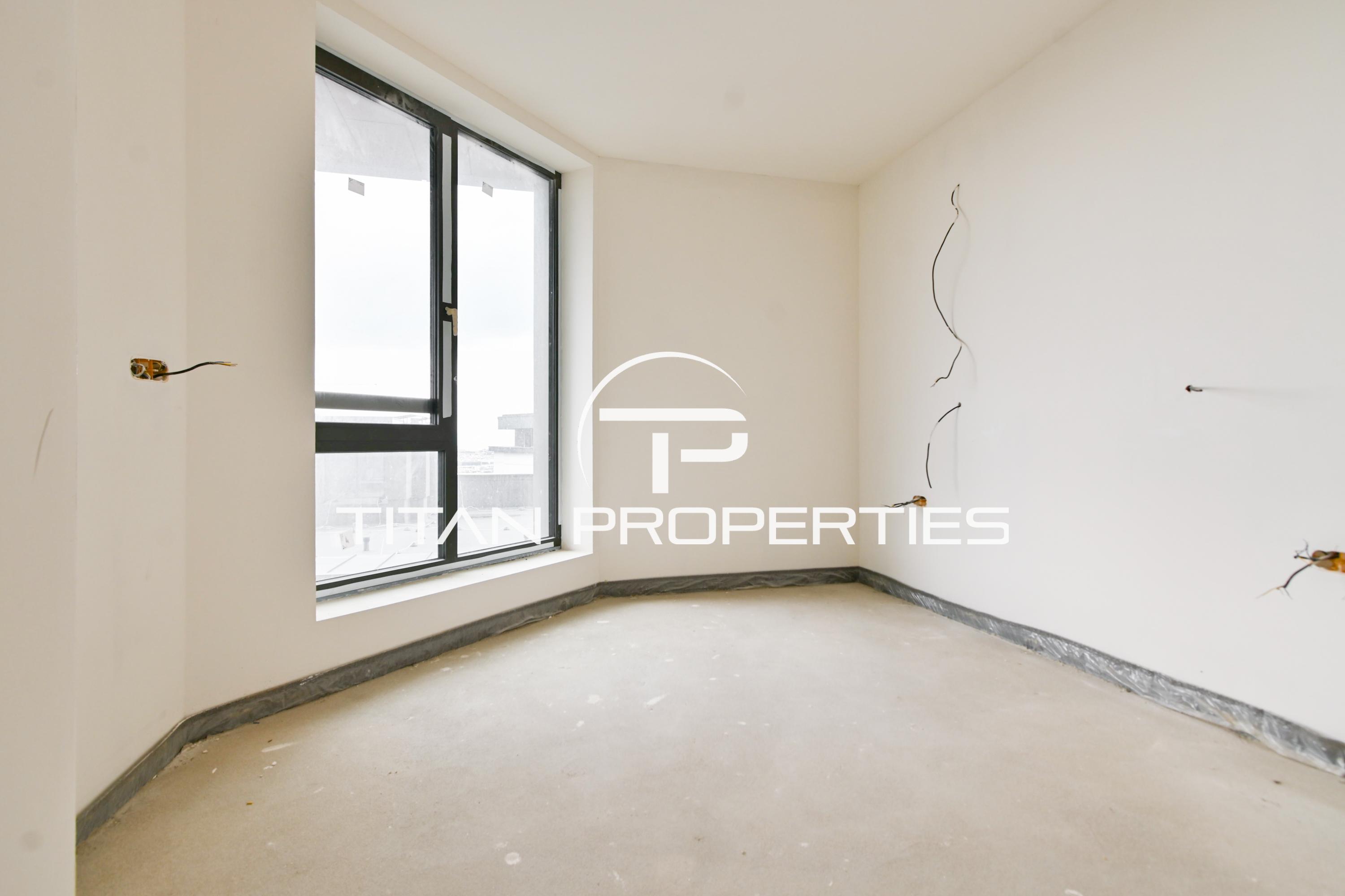 Титан Пропъртис - офис Младост с радост предлага на Вашето внимание тристаен апартамент за продажба в жк. Кръстова вада, София. Жилището с площ от 124 кв.м е разположено на 8-ми етаж от общо 15 в нова сграда (2024 г.). Изложението е Запад/Север. Разпределението включва просторна дневна с кухня (23 кв.м.), две спални (12 кв.м. и 17 кв.м.), две бани с тоалетна (4 кв.м. и 5 кв.м.), мокро помещение (2 кв.м.) и тераса с гледка към Витоша (4 кв.м.). Отоплението е на електричество, имотът е на шпакловка и замазка.